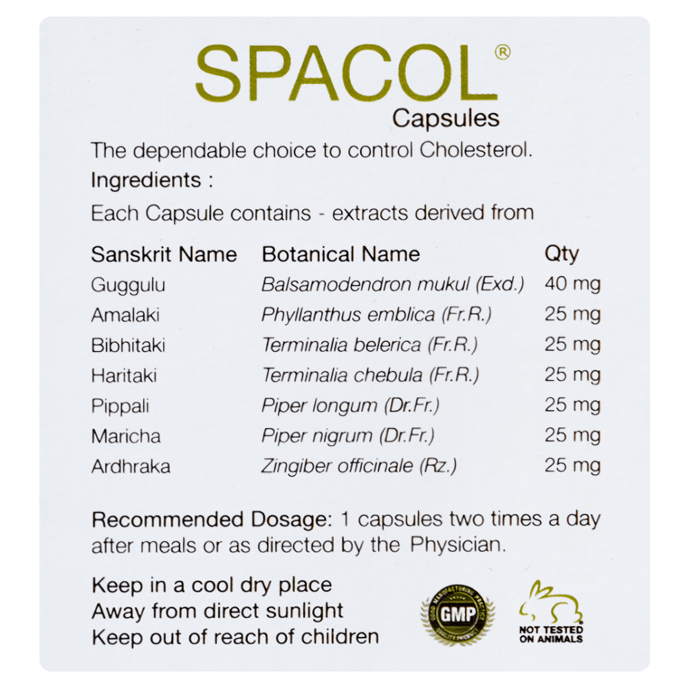 Spacol balances the fat metabolism and balances of the kapha dosha of the human body. It is a completely safe and herbal way to regulate cholesterol levels and promote complete cardiovascular health.