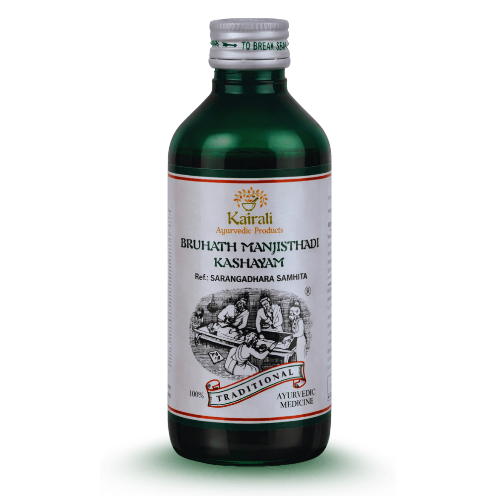 Bruhath Manjishtadi Kashayam is an Ayurvedic remedy used in the treatment of skin diseases, rheumatoid arthritis, facial paralysis, numbness, hemiplegia, eye diseases etc. It is a concoction of selected medicinal herbs having the ability to cure multiple ailments.