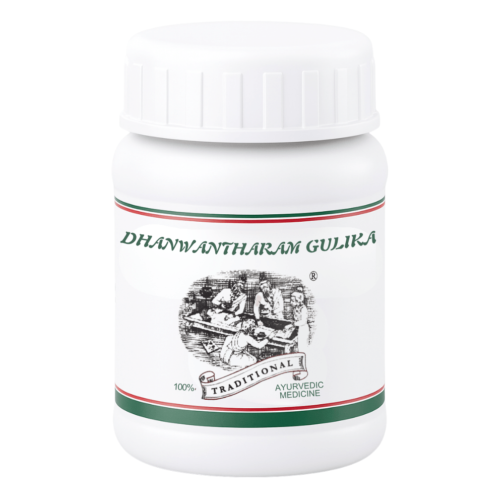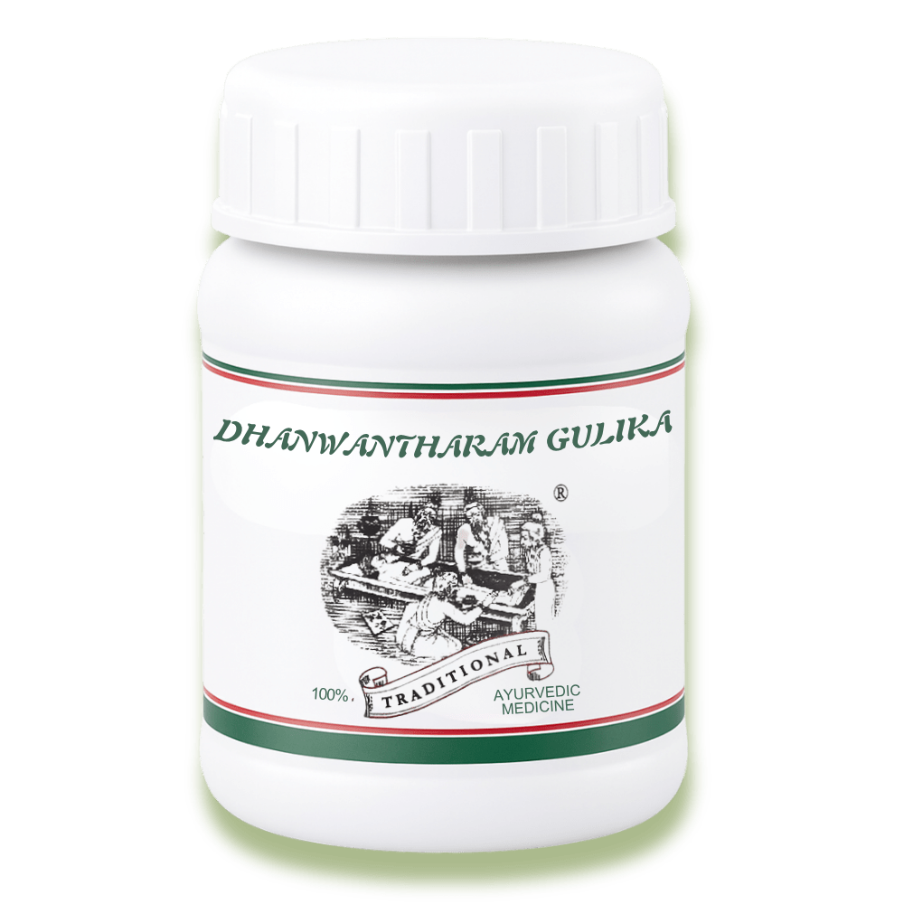 Dhanwantharam Gulika is an excellent and widely used Ayurvedic medicine, highly effective in discomforts like breathlessness, severe cough, hiccups, giddiness, nausea and as a tonic in pregnancy.