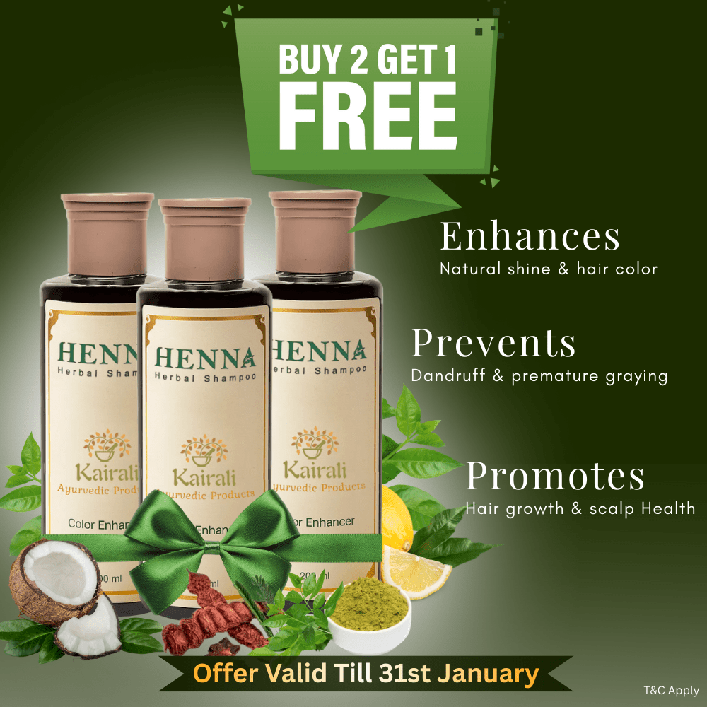 Henna Herbal Shampoo is Kairali's premium herbal solution for promoting hair growth and enhancing natural hair color. Enriched with the natural extracts of Henna and Lemon, it helps maintain scalp health, prevents dandruff, and adds extra shine to the hair. This shampoo also helps prevent premature graying and restores the hair's natural moisture balance.